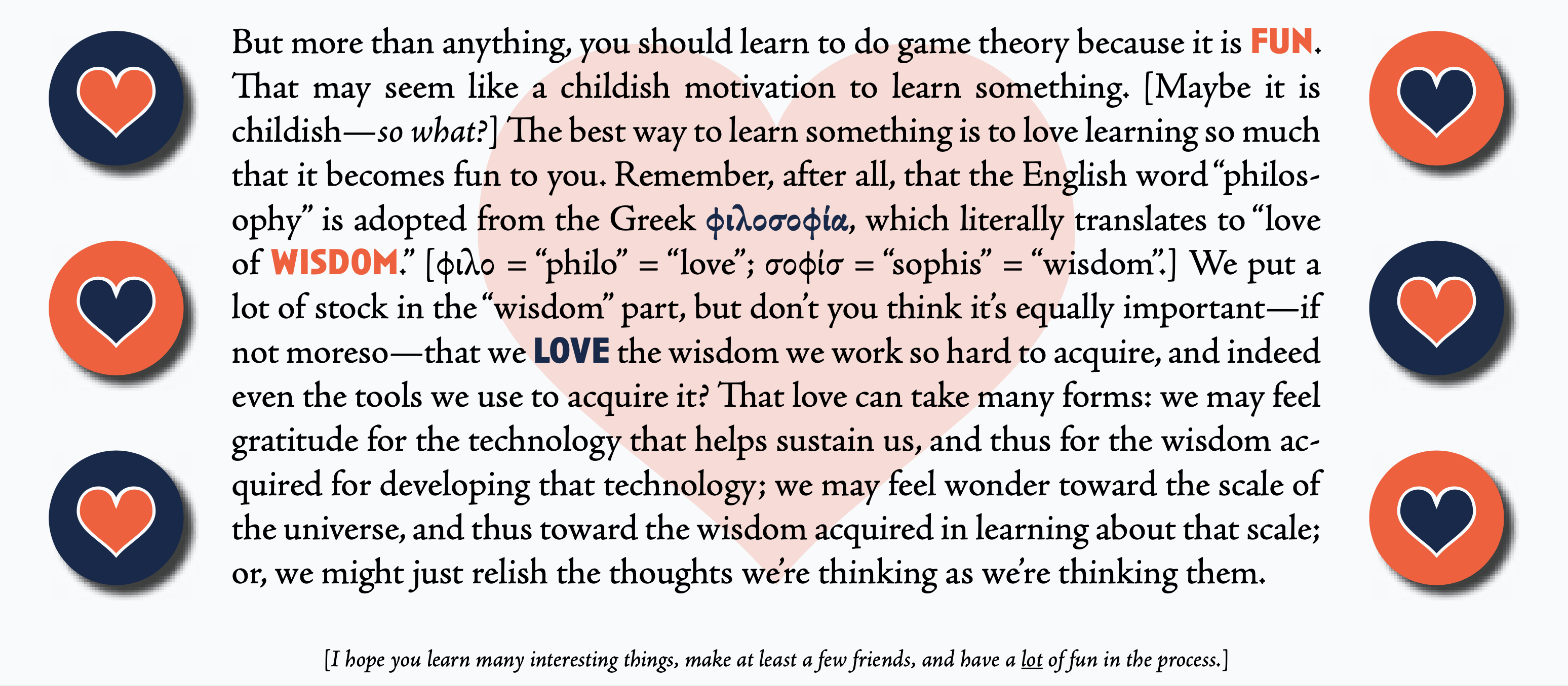 Look, I teach with a point of view and don't apologize too much for doing so. For starters, I teach like a hippie. The hearts, they're real. Let's love one another, people.